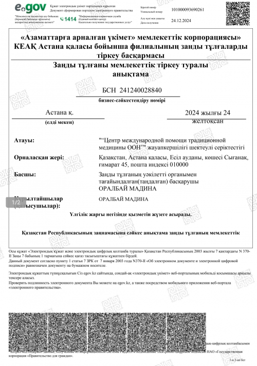 联合国传统医学救援中心有限责任公司的营业执照